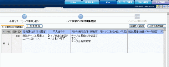 解析するトップ事象となる不具合モードを選択します。候補となるトップ事象は、SSM知識ベースから自動的に抽出します。