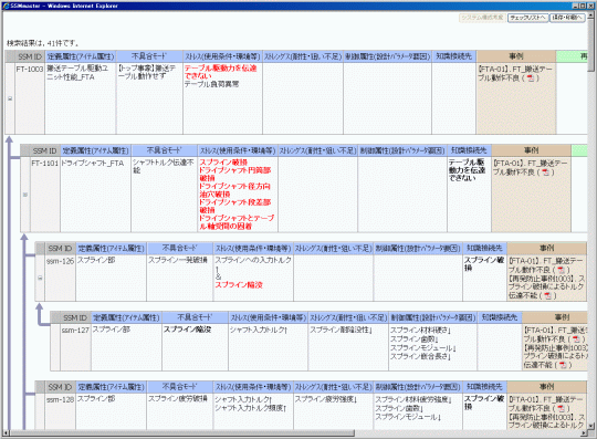 SSMmasterでは、設計アイテムならびに変更点となる技術要素や変化点を候補リストから選択し、関係するトラブル知識をユーザに提供し、FMEAに必要な故障モードとその発生要因の検討を強力に支援します。